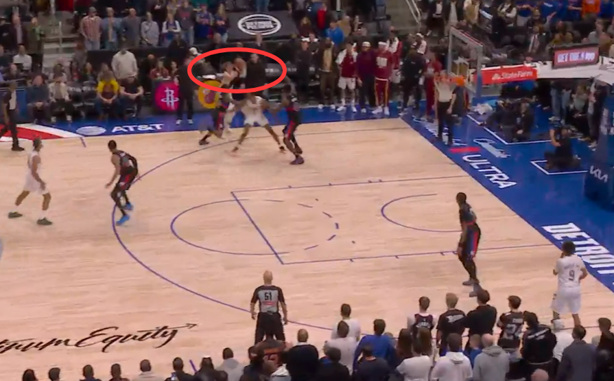 第一次是漏判,发生在距离第四节结束还有1分30秒。杜伦的手从球上滑开,主动接触到了艾伦的手腕,影响了他完成预期传球的能力。这次非法接触导致了艾伦的传球失误。这本该吹杜伦防守犯规,但裁判没有响哨,这是一次漏吹的防守犯规,并导致骑士失误,对手抢断得分。活塞获利,骑士吃亏。