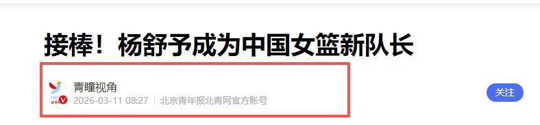 青瞳视角2026-03-11《接棒!杨舒予成为中国女篮新队长》