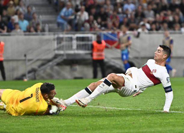 第16分钟,斯洛伐克后卫停球被C罗断下,B费得球在禁区内射门被门将倒地扑住。